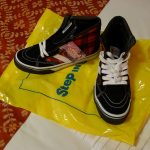 挑來挑去挑上一雙2990円的男款(式樣應該跟上面那雙相同吧?)但是size沒有我的,石井先生很努力地找來另外一雙同色系、樣式也差不多的3990円款,二話不說直接也算2990円。那就買吧^^