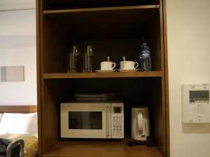 飯店本身非常新穎,據老婆的說法是完全沒有飯店味。因為是公寓酒店的關係,也提供了基本的電爐、微波爐、廚具、餐具等等,都幾乎是全新的,那個IH電爐,雖然火力小了點,但做一些簡單的食物還是相當方便的。