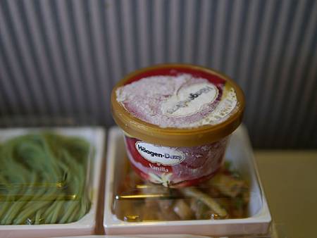 這次選擇的飛機是日航JAL,機上餐還是不怎樣,但是它有Häagen-Dazs啊!!有這個贏全部!!